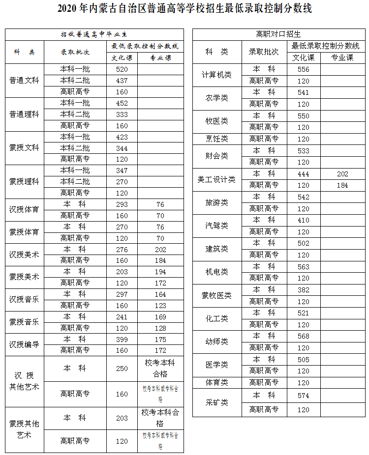 高考结束后,很多人对于高考录取分数线非常关心,下面小编为大家总结整理了2020年内蒙古高考本科录取分数线,供大家参考。