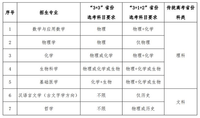 数学与应用数学、物理学、化学、生物科学、基础医学﹑汉语言文学(古文字学方向)﹑哲学。