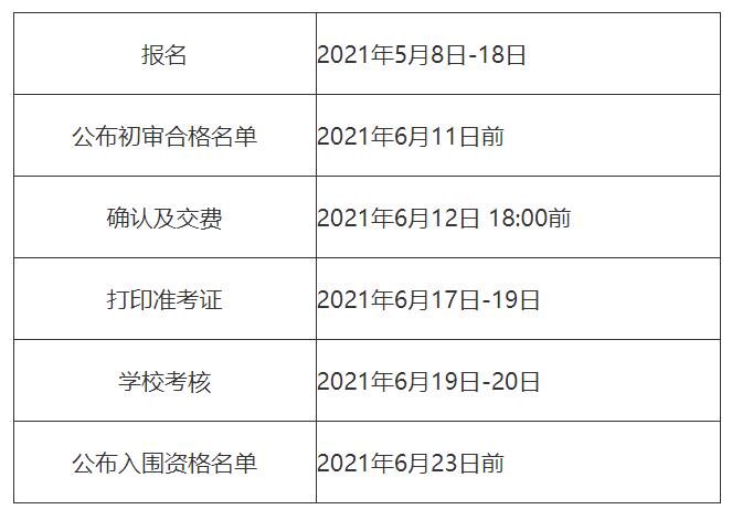 初审通过的考生需登录报名系统于2021年6月12日18:00前进行确认及交费,并于2021年6月17日-19日打印准考证。