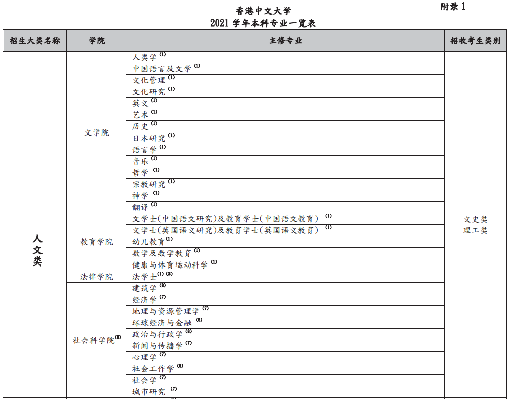 香港中文大学2021年招生计划及专业 招生专业有哪些