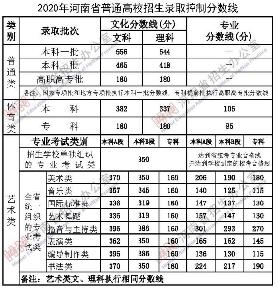 2020河南高考分数线