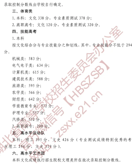 2020年湖北专科录取分数线