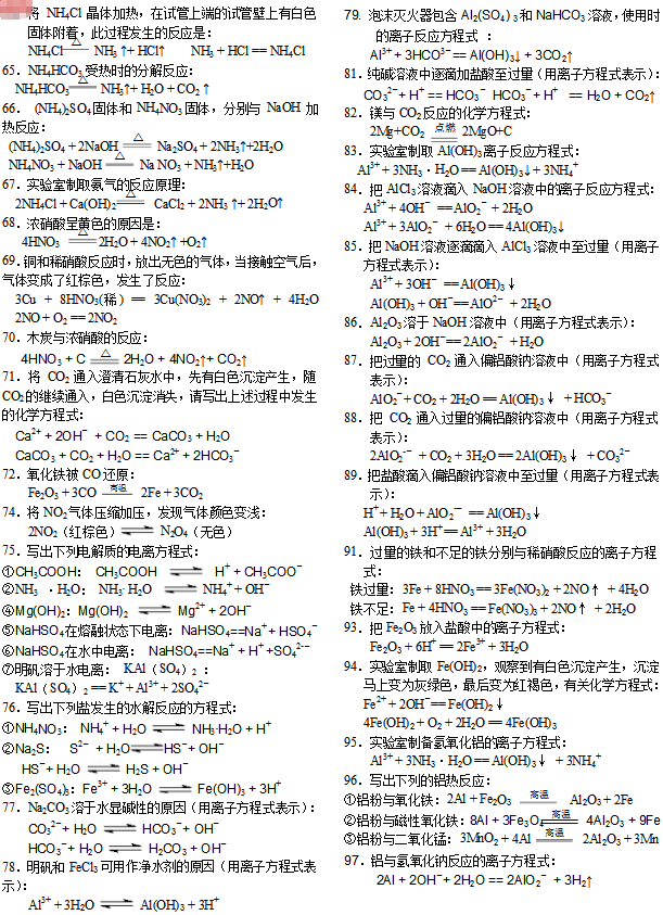 网小编整理了《500个高中化学方程式 高中化学方程式总结版》,供参考。