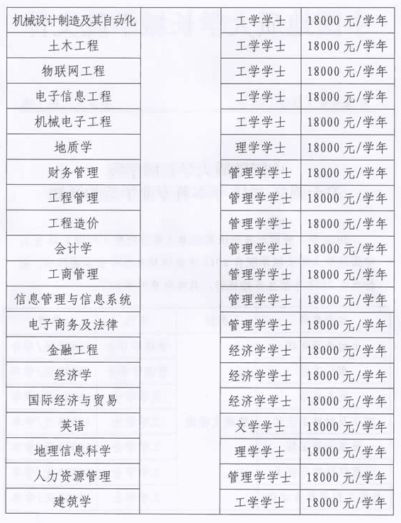 | 工程造价 | 文理兼收 | 三年 | 6000元/学期 |