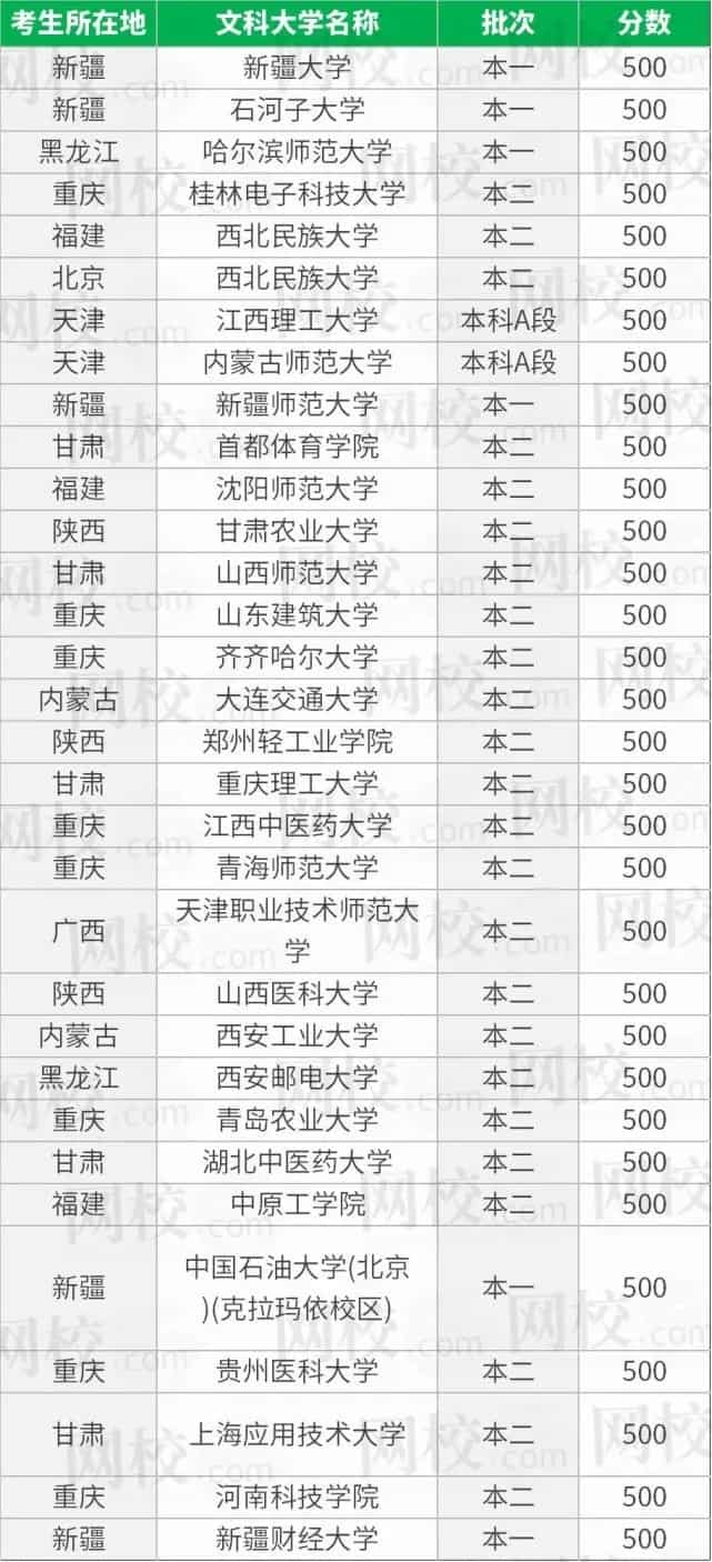 注:以上高考500分左右文科大学仅供参考,报考时可能会出现扎堆或断档等情况,具体以官方公布分数线为准,所以考生及家长填报高考志愿时还要多方面参考各类报考数据,以便在报考时不瞎分,也不会被退档。