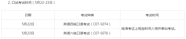内蒙古2021上半年英语四六级口试时间