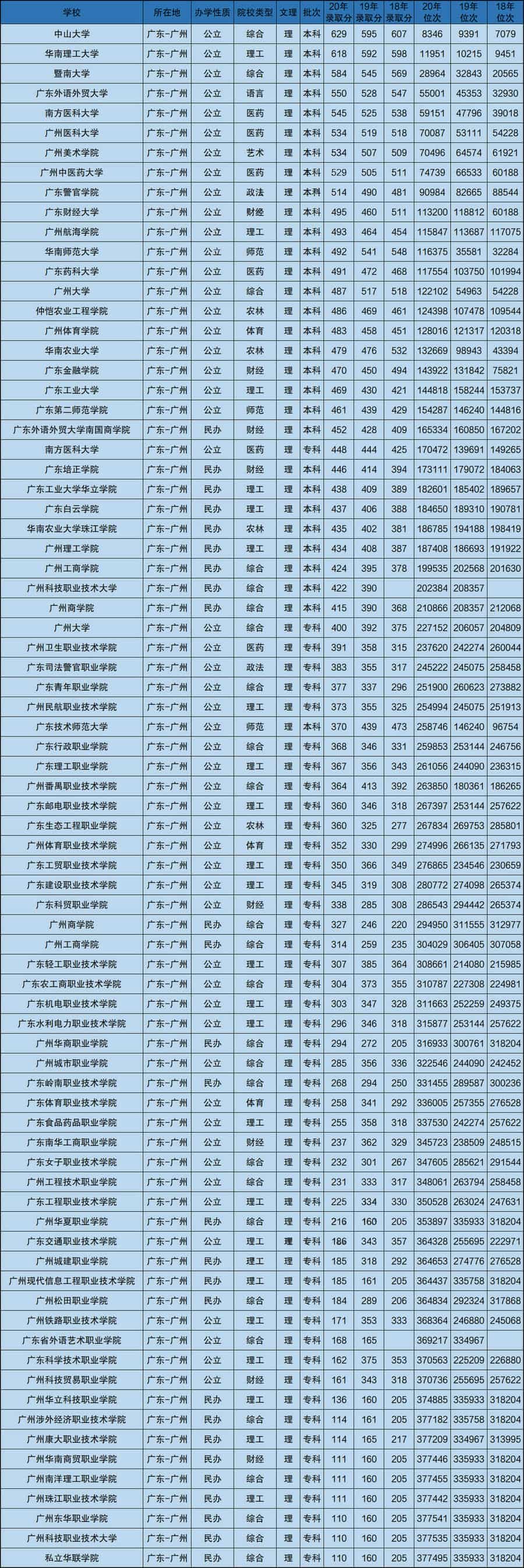 小编根据广东省2020年的招生录取情况,从中摘录出位于广州市的高校近年来的录取分数,以下是详细名单: