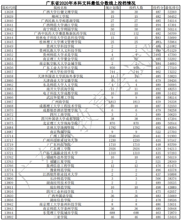 2020广东本科普通批次文科投档分数线 时间:2020-08-19 08:40 分数线 根据招生录取日程安排,2020年广东高考本科批次院校录取将于21日结束。目前,广东本科普通批次文科投档分数线已经公布,下面小编为大家详细介绍一下,供大家参考。广东本科普通批文科投档分数线