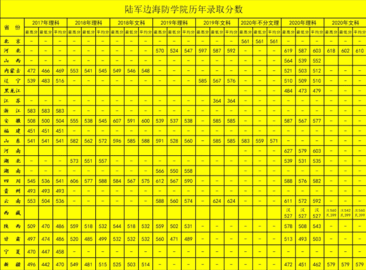 2020陆军边海防学院各省录取分数线 多少分能考上