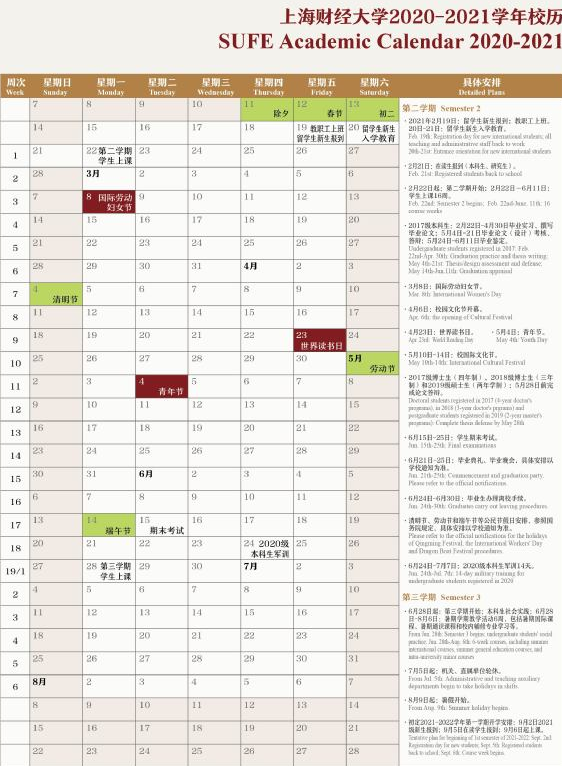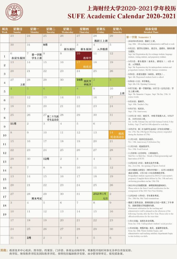 2020年上海财经大学9月2日-9月3日新生报到,9月6日在读生报到,9月7日开始上课。