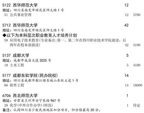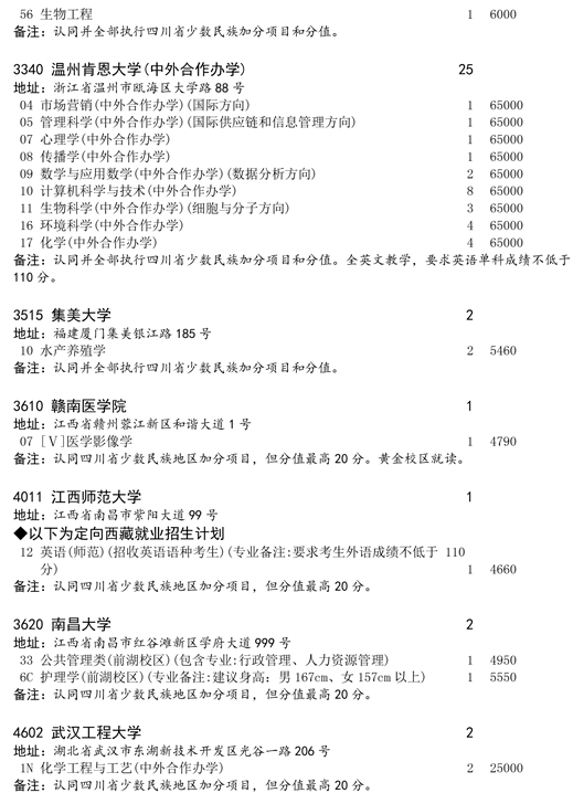 1.定向西藏就业招生未完成计划征集志愿对象为高考成绩在学校调档线下40分以内且在第一次志愿填报时填写了《四川省普通高校招生考生报考定向西藏就业志愿申请书》的未被录取考生。