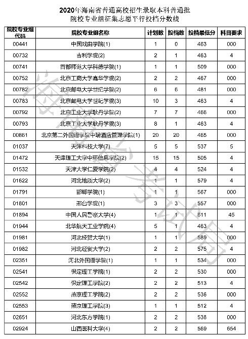 近日,2020年海南省普通高校招生录取本科普通批(含少数民族班和预科班)院校专业组征集志愿平行投档分数线已经公布。下面小编为大家详细介绍一下,供大家参考。
