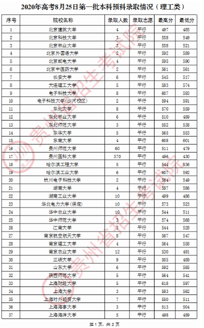 目前,2020年全国各省市招生录取工作正在进行,贵州省高考第一批本科预科录取情况已经公布。下面小编为大家详细介绍一下,供大家参考。