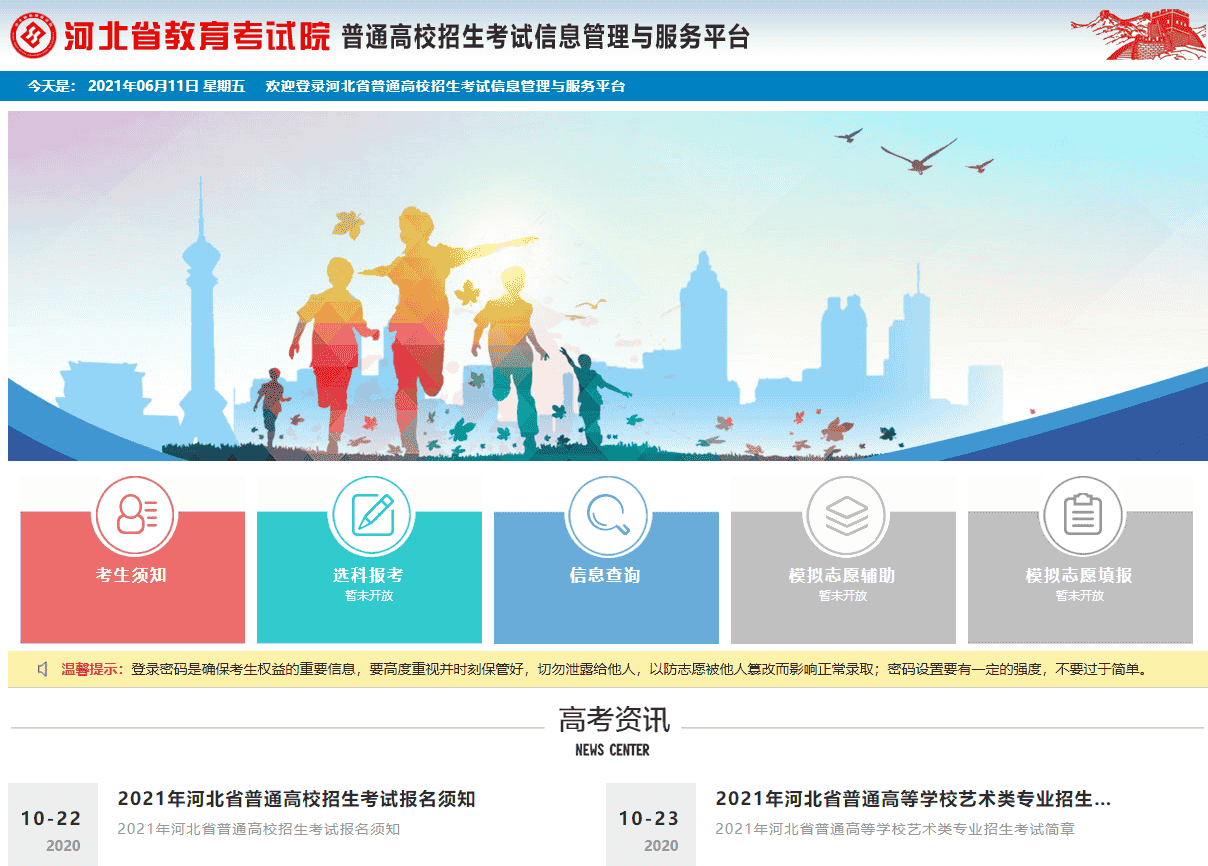2021年河北高考填报志愿入口 时间:2021-06-11 15:31 填报指导 2021年河北高考填报志愿入口 志愿填报期间,每天0时—6时为系统维护时间,不能填报志愿。 填报志愿网站:https://gk.hebeea.edu.cn 河北2021高考相关: 2021年河北高考填报志愿时间日期 2021年河北高考成绩查询入口及成绩构成、等级赋分方式公布 2021年河北高考成绩排名及一分一段表