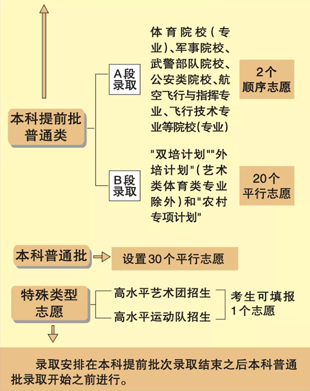 1.志愿设置:专科招生设置专科提前批、专科普通批2个批次,并按顺序依次录取。