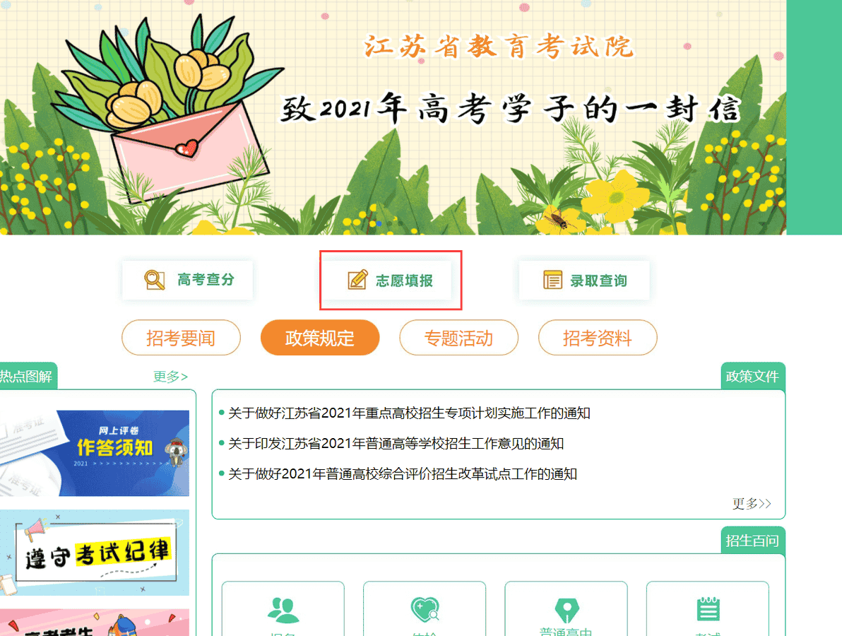 为更好地服务考生,省教育考试院专门制作了江苏省2021年高考志愿填报指导动画,帮助考生了解志愿填报政策和注意事项,在志愿填报期间,省教育考试院还将开通网上咨询平台,及时解答考生各类疑问。