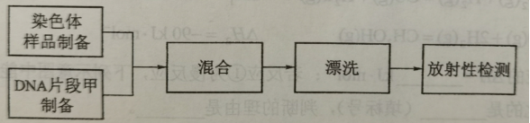 用一段由放射性同位素标记的DNA片段可以确定基因在染色体上的位置。某研究人员使用放射性同位素32P标记的脱氧腺苷三磷酸(dATP,dA-Pα~Pβ~Pγ,)等材料制备了DNA片段甲(单链),对W基因在染色体上的位置进行了研究,实验流程的示意图如下。