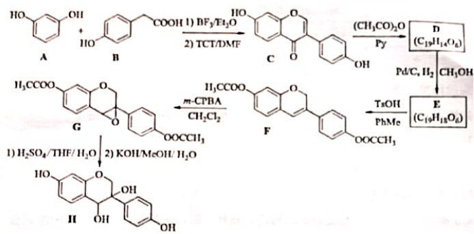 近年来,以大豆素(化合物C)为主要成分的大豆异黄酮及其衍生物,因其具有优良的生理活性而备受关注.大豆素的合成及其衍生化的一种工艺路线如下: