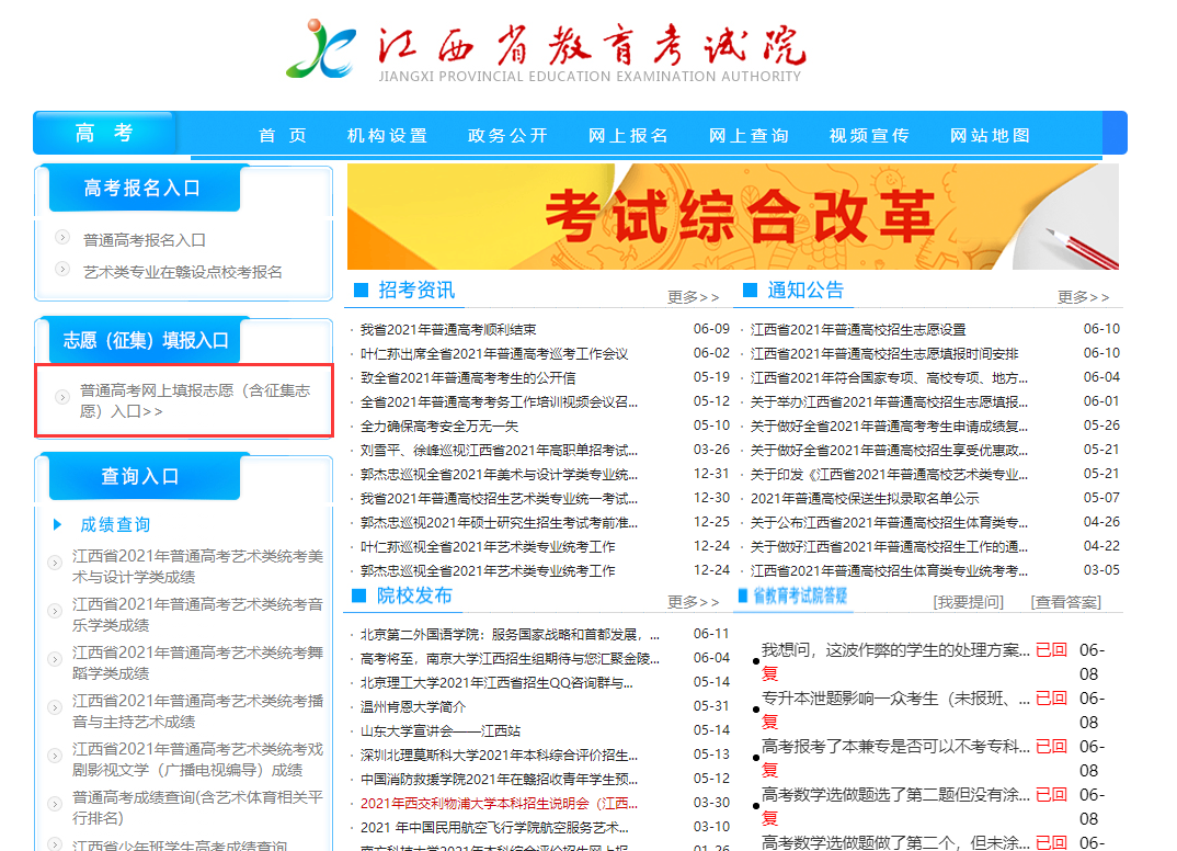 ●江西:2021年普通高校招生志愿设置及填报时间安排招生计划