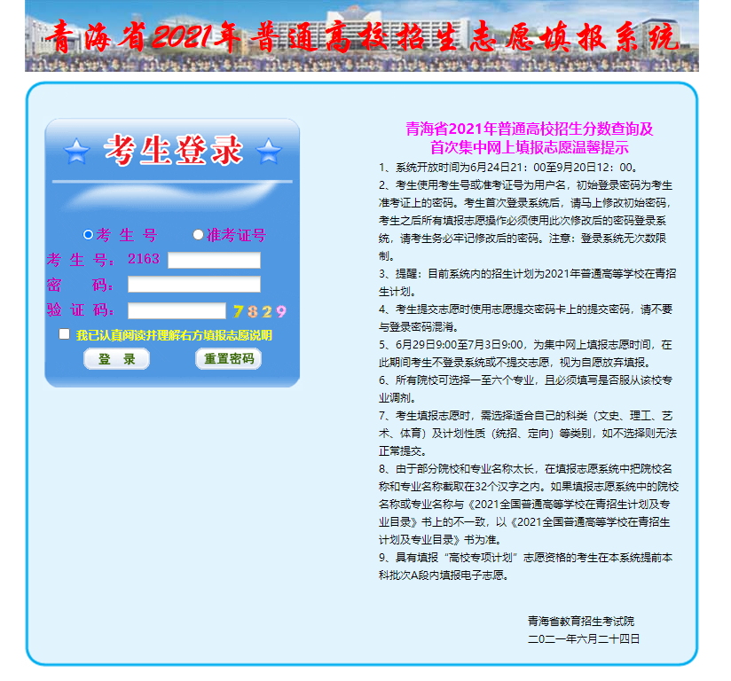 2021青海高考志愿填报系统入口:青海省教育招生考试院