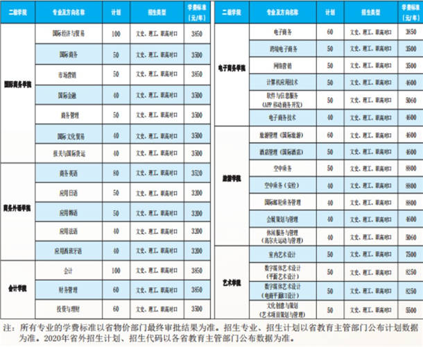 学费数据来源:2020年招生简章(普招)(http://www.hnwmxy.com/hezuobangongshi/bumengongzuo/202007046475.html)