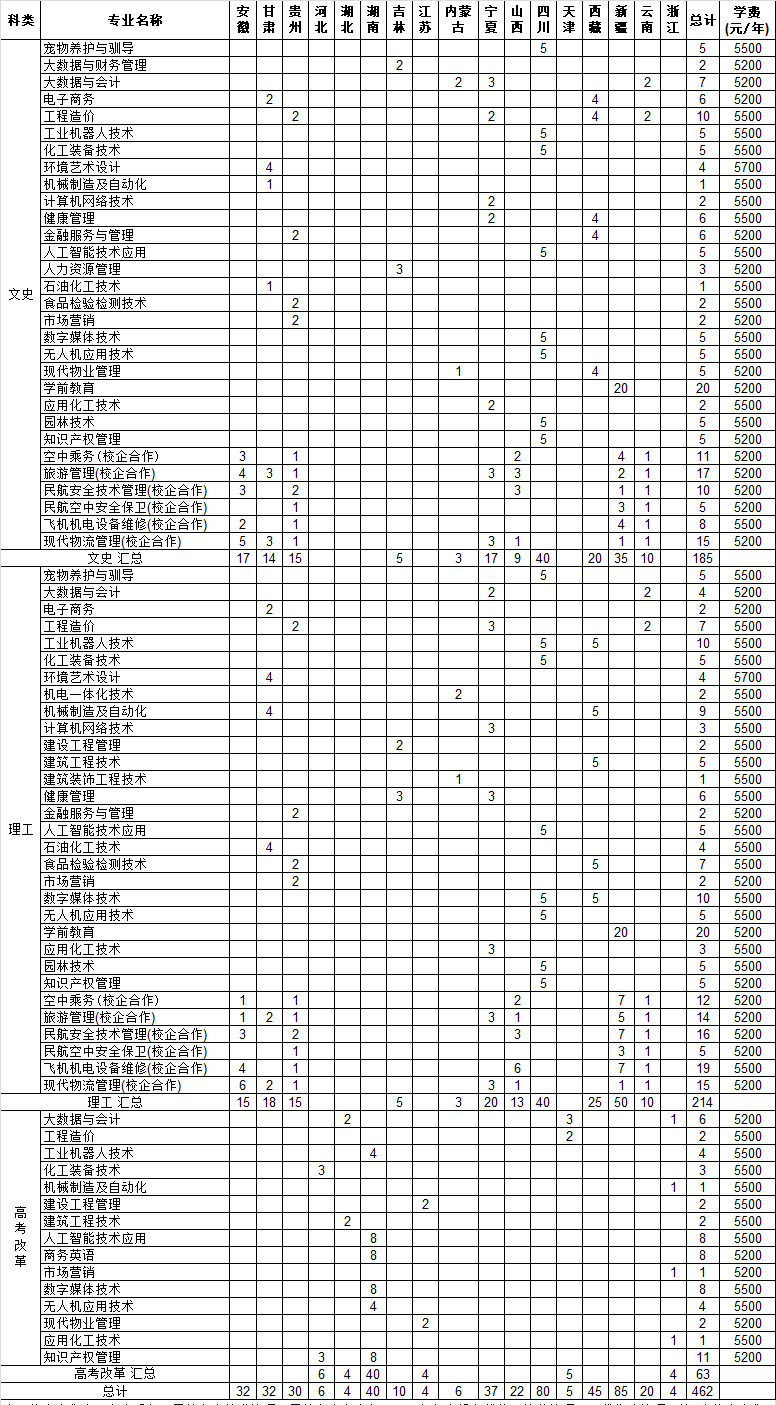 东营职业学院2021年省外招生计划一览表