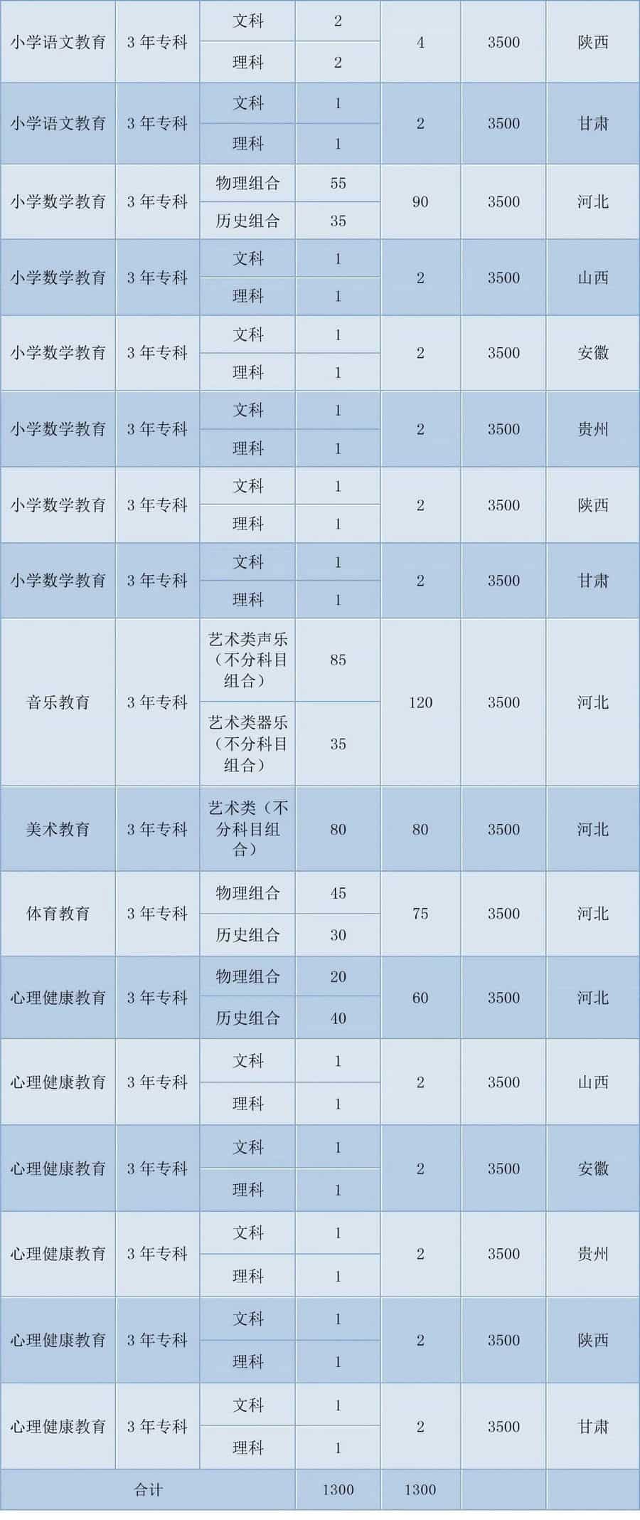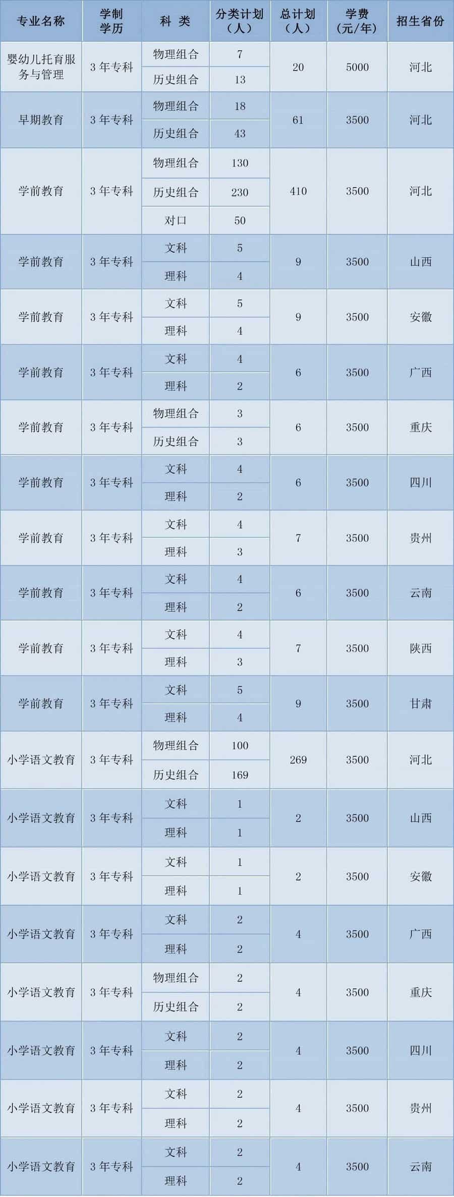 邯郸幼儿师范高等专科学校2021年招生专业及计划