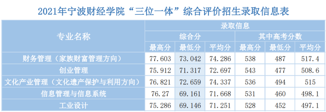 招生进程 | 宁波财经学院2021年“三位一体”综合评价招生录取结果公布