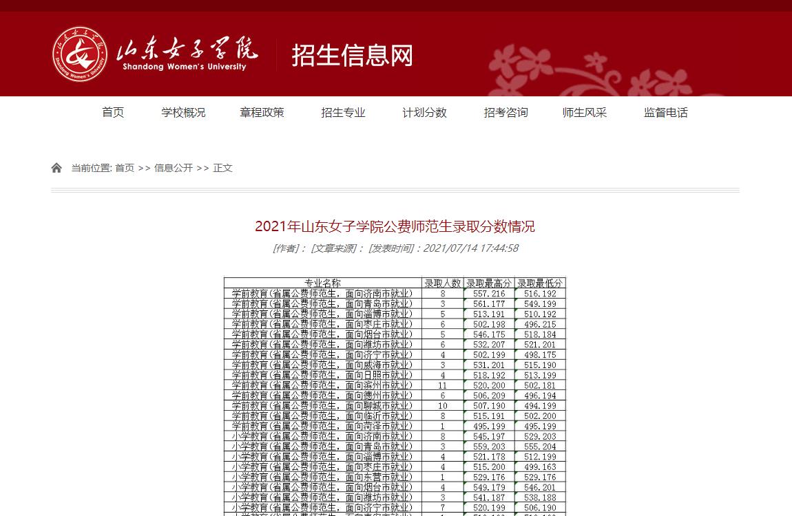 内容:2021年山东女子学院公费师范生录取分数情况【一键点击去官网浏览】