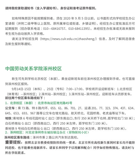 2021年中国劳动关系学院迎新系统 报到流程及入学须知