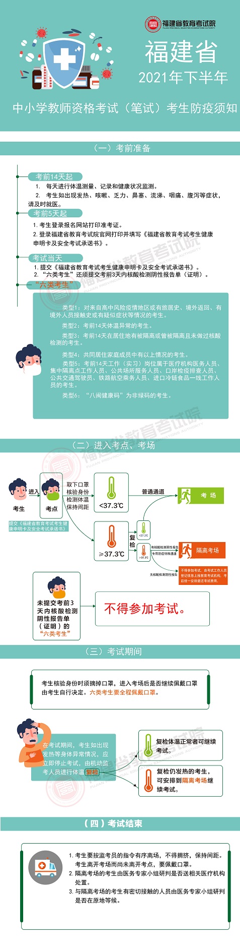 福建省2021年下半年中小学教师资格考试笔试考生防疫须知