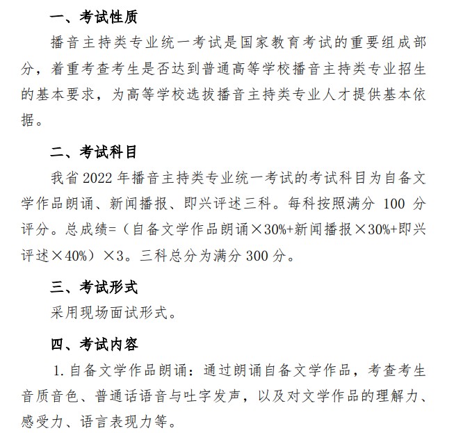 2022年山东播音主持专业统一考试公告已经公布,小编整理了相关信息,来看一下!