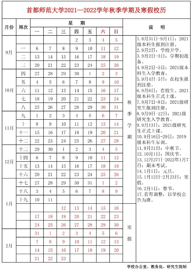 2022首都师范大学寒假放假时间