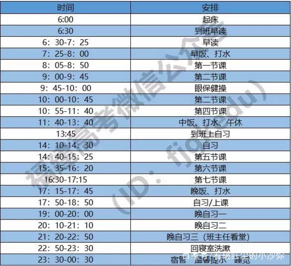 对于高三生而言,睡懒觉是和自己无关的事情了,一日之际在于晨,这个时候是头脑最清醒且体力最充沛的时间,也是学习和锻炼的黄金时间,这个时间安排全所有功课的全面复习,尤其是记忆力的课程(比如英语单词、文科类科目等)。