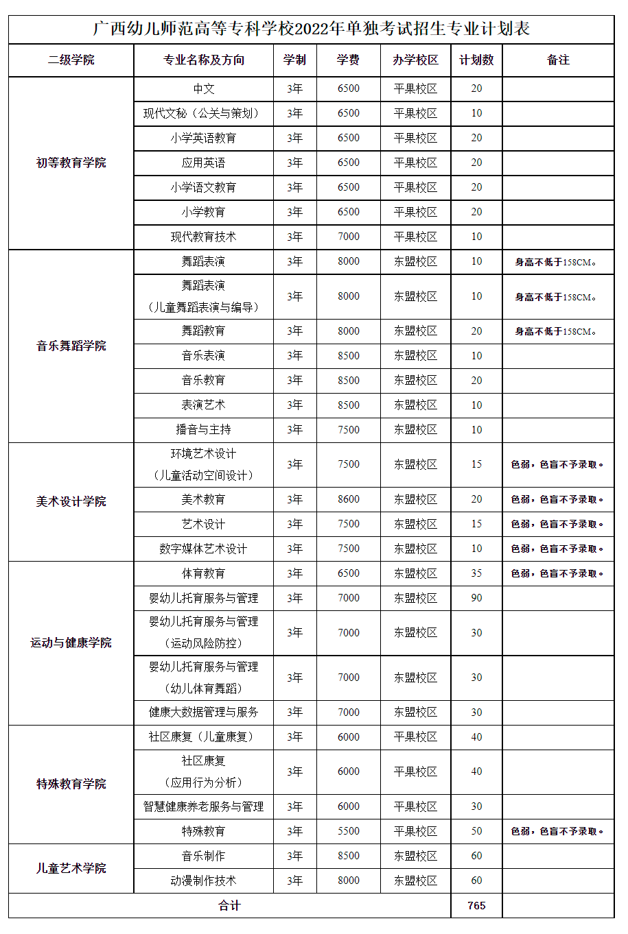 2022广西幼儿师范高等专科学校高职单招招生专业及计划