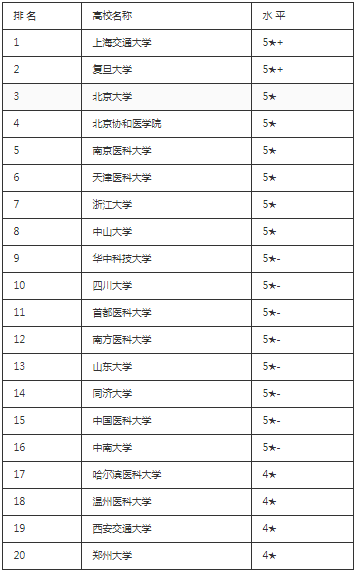 临床医学专业最好的大学包括上海交通大学、复旦大学,这两所大学综合评估水平是5星+。