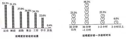 B.据调查,有一半以上的爱好者喜欢在睡前或运动时听说唱音乐,有将近一半的爱好者一天会花30分钟到一个小时来听说唱音乐。
