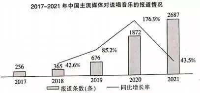 B.近年来,中国主流媒体对说唱音乐的报道量递增,以2021年最高但同比增长率起伏较大,2020年呈现暴涨状态。