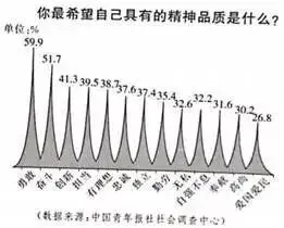 坚强,拼搏,奋斗,勤劳,勇敢,奉献……这些词汇伴随着人们的成长,成为很多人的精神坐标。毛泽东同志曾说:“人是要有一点精神的。”人的一生需要什么精神?日前,中国青年报社社会调查中心联合问卷网对2064名青年进行的专项调查显示,超过半数受访者表示,勇敢和奋斗是他们最希望具备的精神品质。