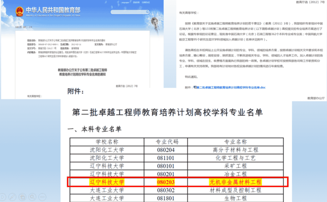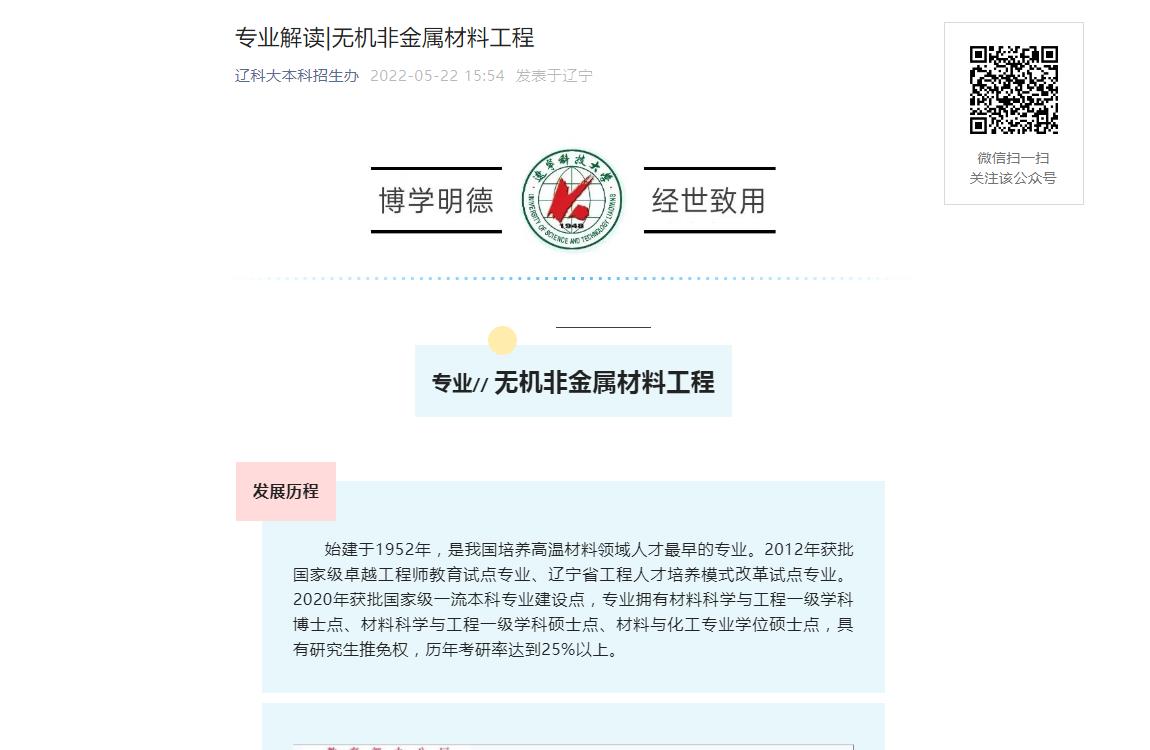 我国培养高温材料领域人才最早的专业。国家一流专业建设点、国家级卓越工程师教育培养计划专业、省一流本科教育示范专业。有材料科学基础等省级一流课程3门,有辽宁省镁质材料工程研究中心等4个省级研究中心,省内外有39家实习实践基地。有一级学科博士点、材料科学与工程一级学科硕士点、材料与化工专业学位硕士点,具有研究生推免权。