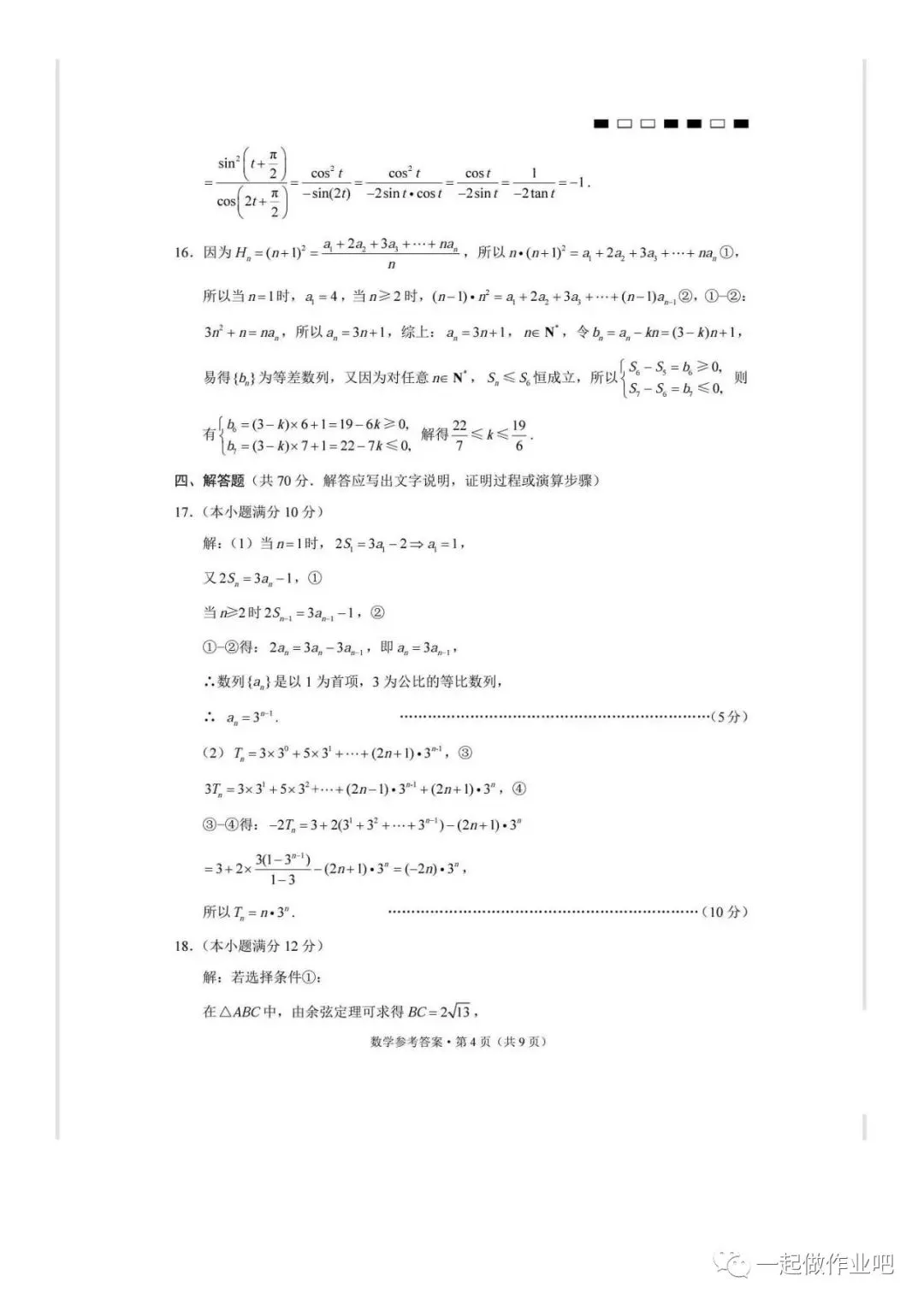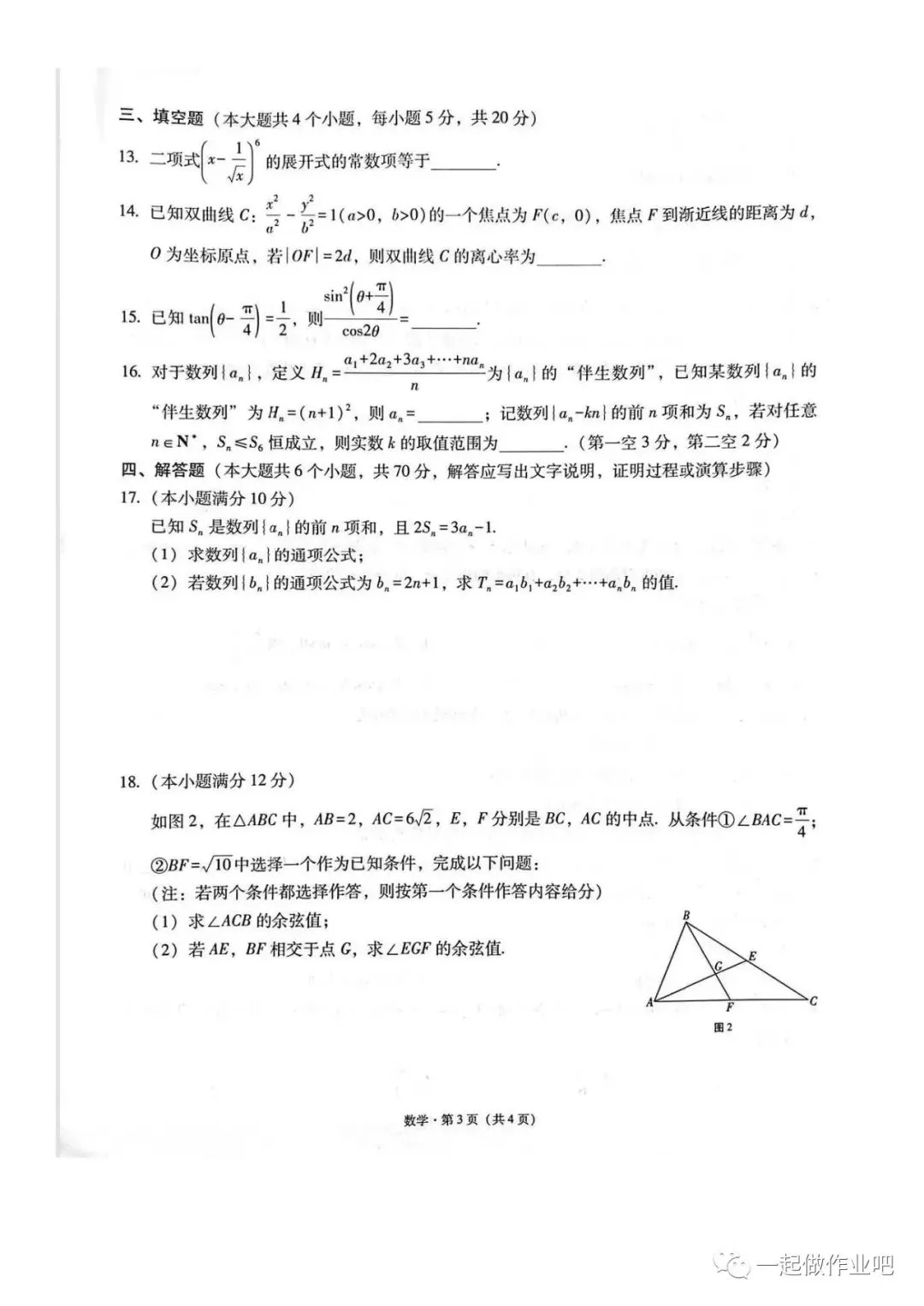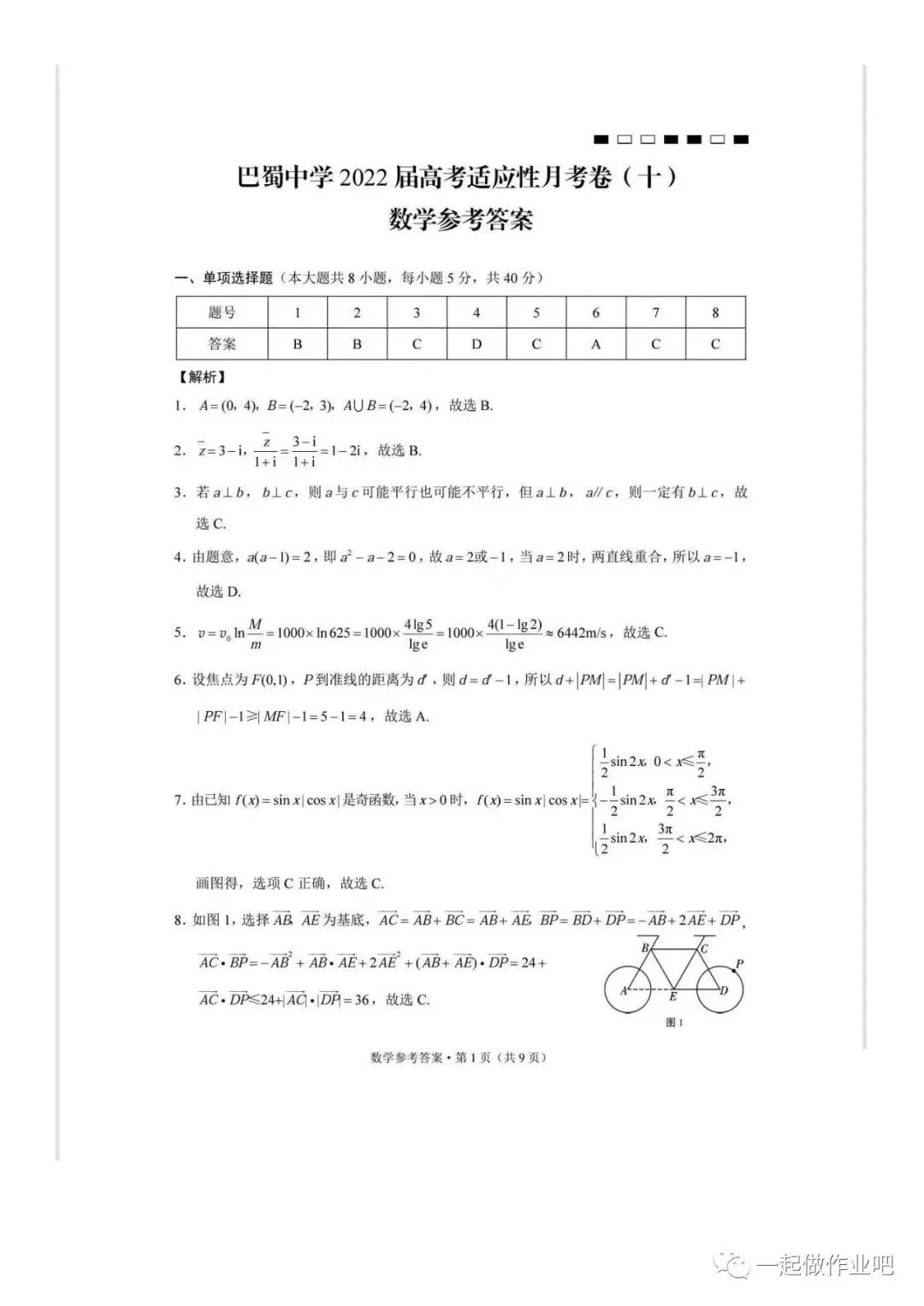 重庆市巴蜀中学高2022届高三月考(十)数学试题及答案