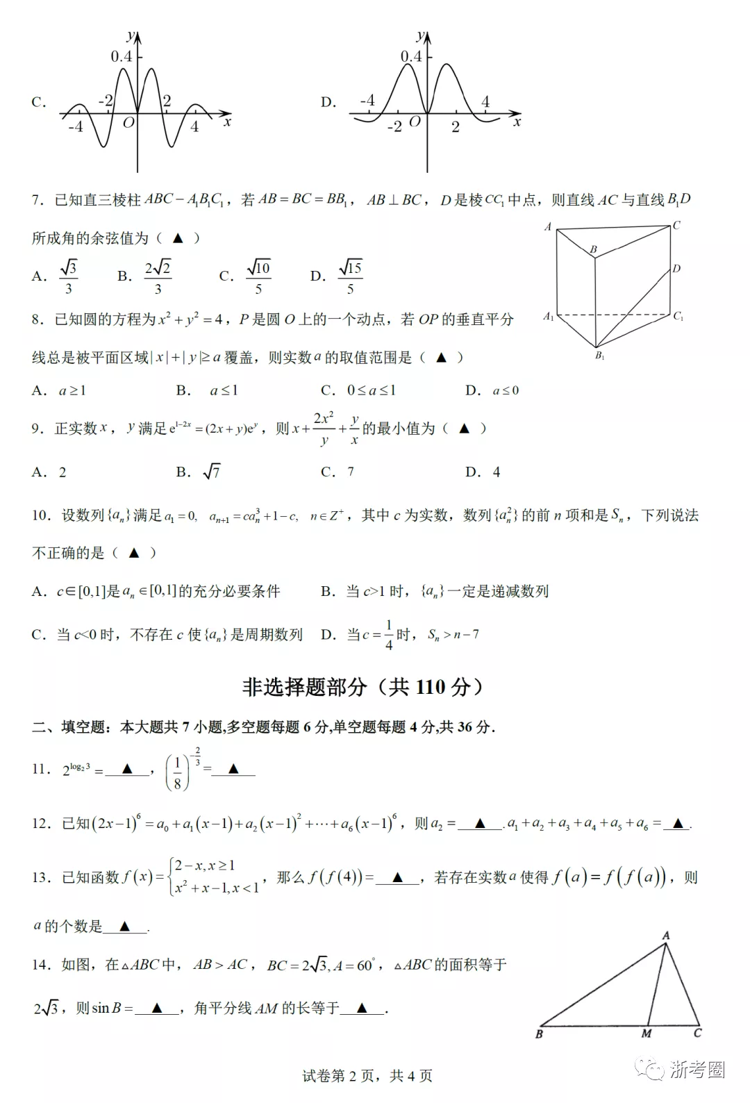 2025届浙江省G12名校协作体高三返校考数学试题及答案