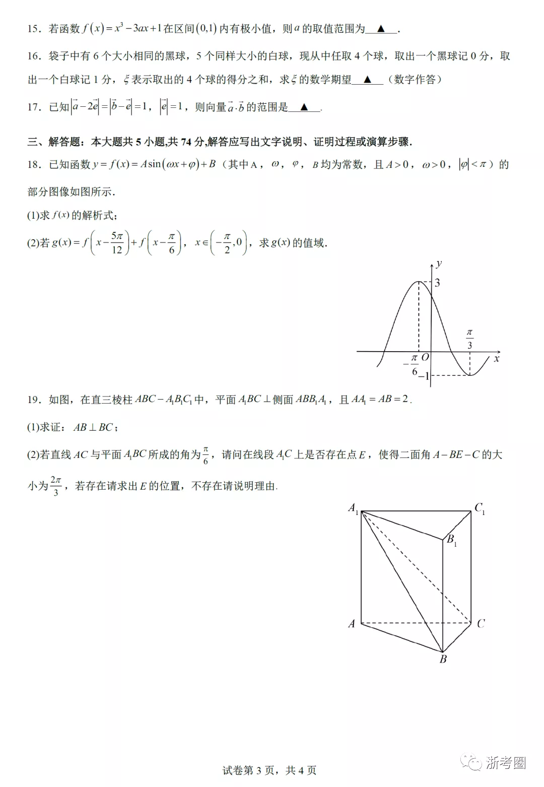 浙江强基联盟2024年8月高三联考数学试题及答案