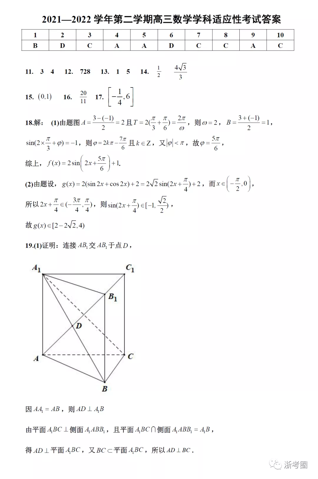 2022年5月学军中学高三数学模拟试卷及参考答案