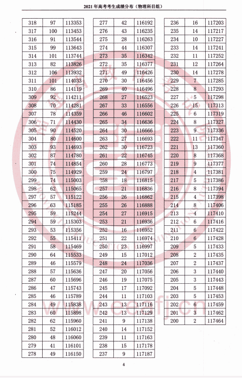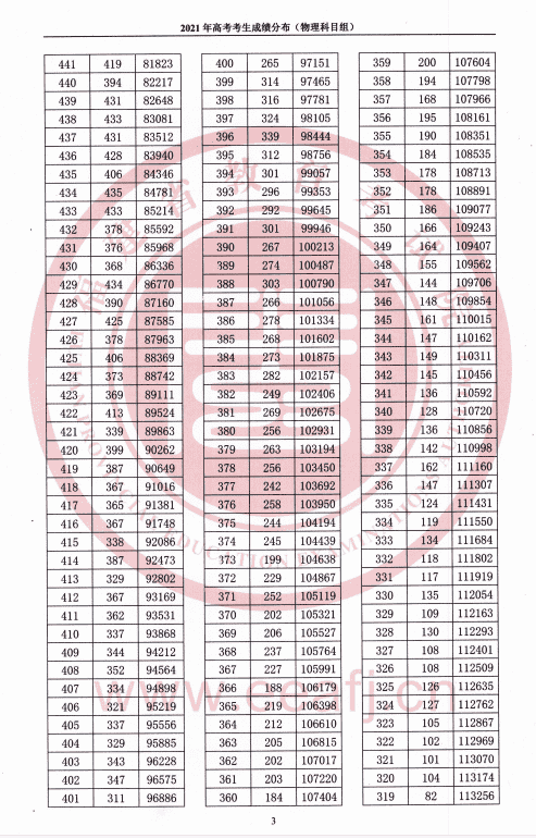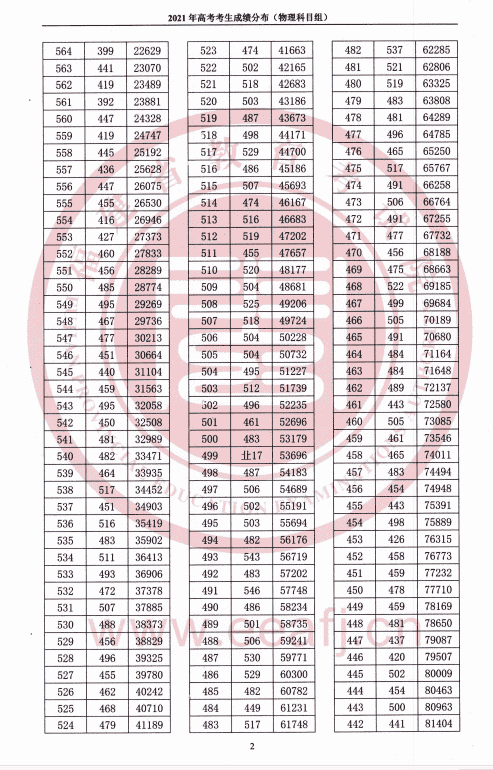 2021年高考考生成绩分布(物理科目组)