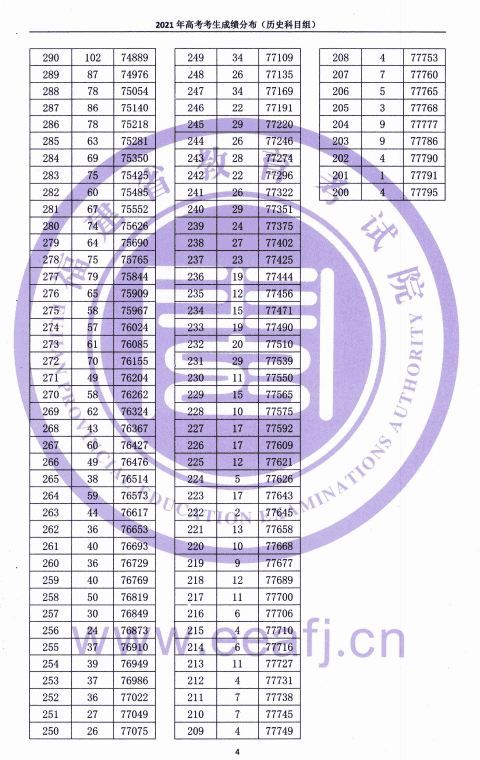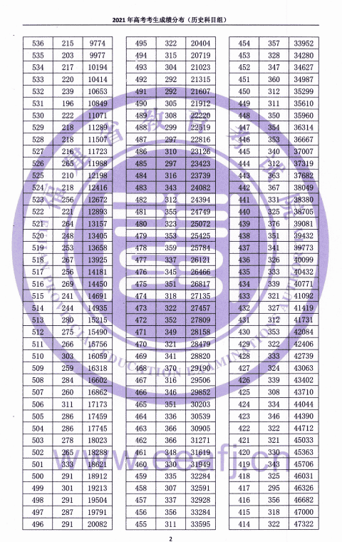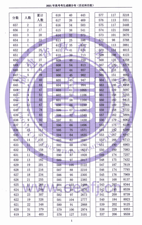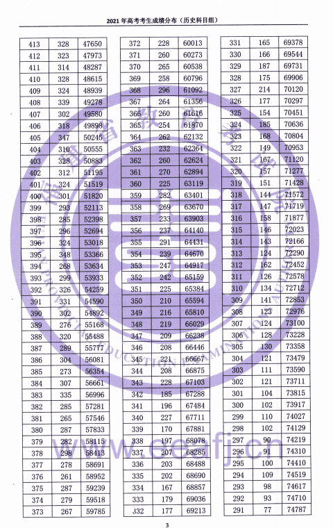 2021年高考考生成绩分布(历史科目组)