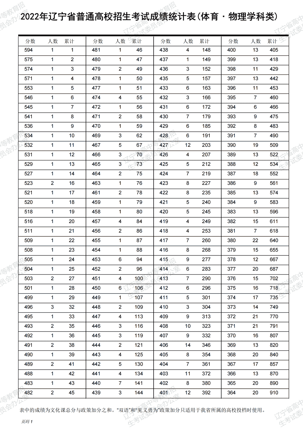 辽宁2022高考成绩及录取分数线已发布,其中同学们最关心的是2022年辽宁高考体育类一分一段统计、分段位次排名等相关信息,本文将为为大家整理2022年辽宁高考体育类一分一段表统计情况,供同学们参考。