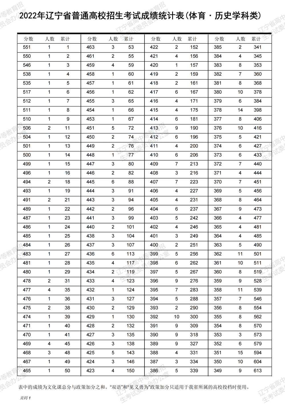 2022年辽宁高考体育类一分一段统计表及分段位次查询(物理类,历史类)
