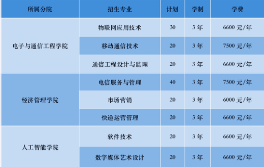 注:各专业所属学院情况,参见本章程第六条浙江邮电职业技术学院2021年高职提前招生计划表。