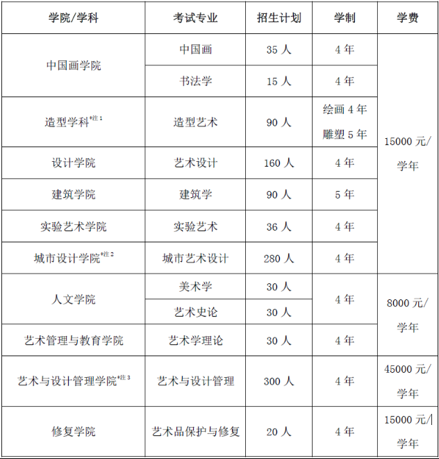 注1:造型学科包含油画系、版画系、雕塑系、壁画系,学生第一年在造型学科基础部学习。